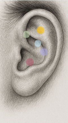 Die fünf Ohrpunkte unterstützen Regulation, Klarheit und Stabilität, besonders in Phasen, in denen der Körper „zieht“, der Kopf kämpft oder alte Muster aktiv werden.